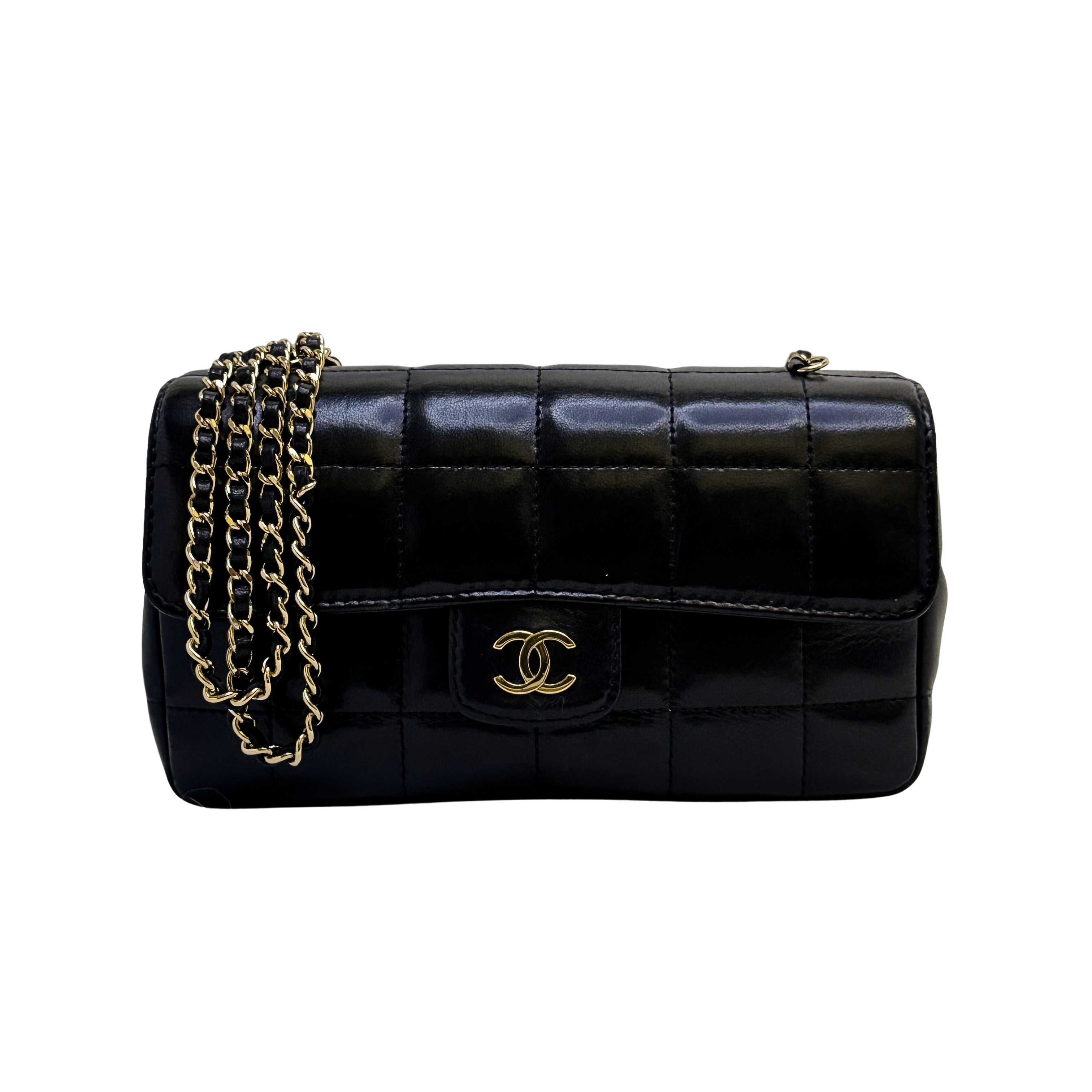 Chanel Bar Quilted Shoulder Bag Leather Black